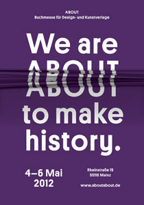 »We are ABOUT to make history« is the motto of the first ABOUT Independent Publishing Fair in Mainz. This fair for small publishing houses and self-publishers that work within the fields of art and design is taking place from Friday, 4 to Sunday, 6 of May 2012. It complements »Schrift/Macht/Welten.«, a notable symposium that will address to the relationship of typography and power, and is organized by the German Society for Design History in Mainz.